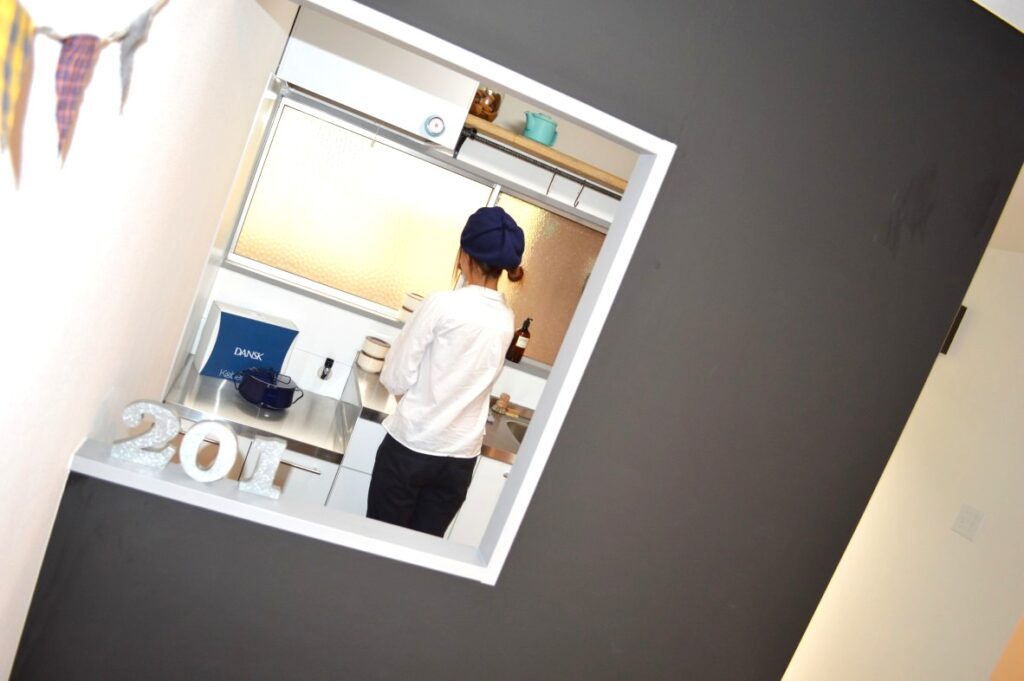 キッチンの小窓やウォークインクローゼットのFIX窓など、どこにいてもふたりの気配を感じられるデザインです。毎日をふたりで楽しく暮らすための部屋が出来上がりました。