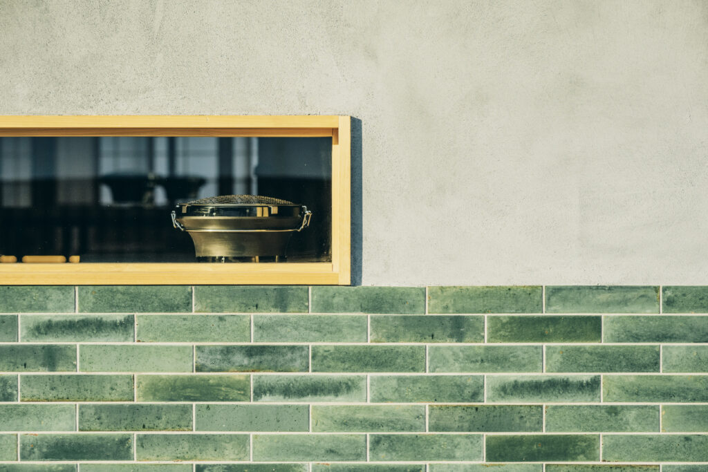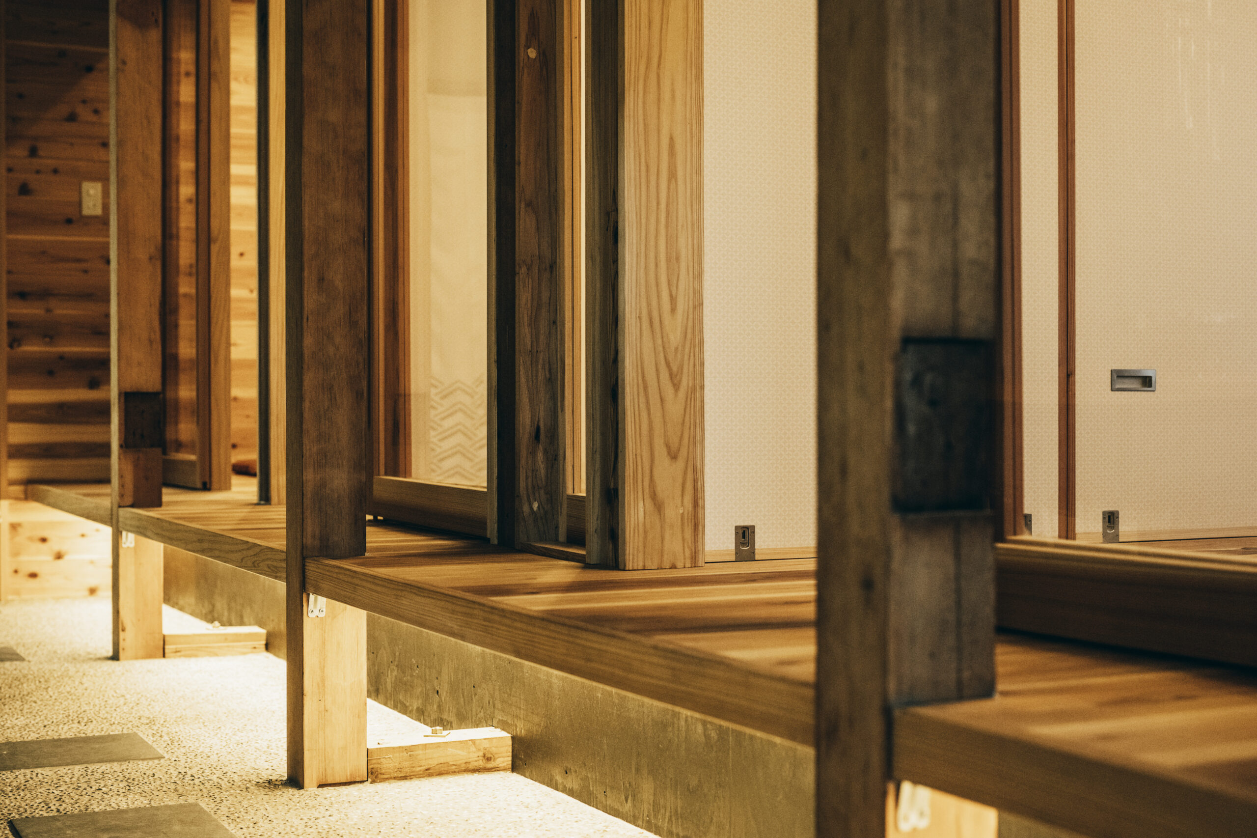 中庭から外れた庭を意識したタタキの土間スペース。
