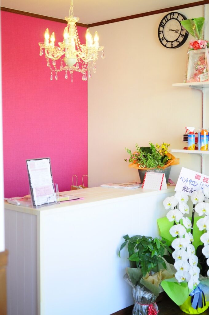 ワンちゃんたちが映えるかわいらしい空間にしました。